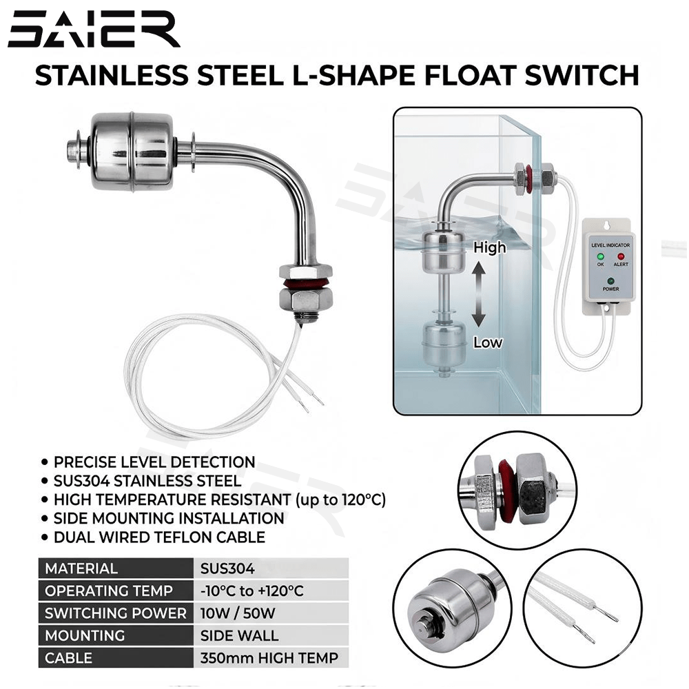 The SAIER SSL80 vertical stainless steel float switch is crafted from high-grade stainless steel, offering a robust Zero-Power sensing solution where plastic sensors fail. Designed for Vertical Installation, it provides pinpoint accuracy in high-pressure sumps and so on.